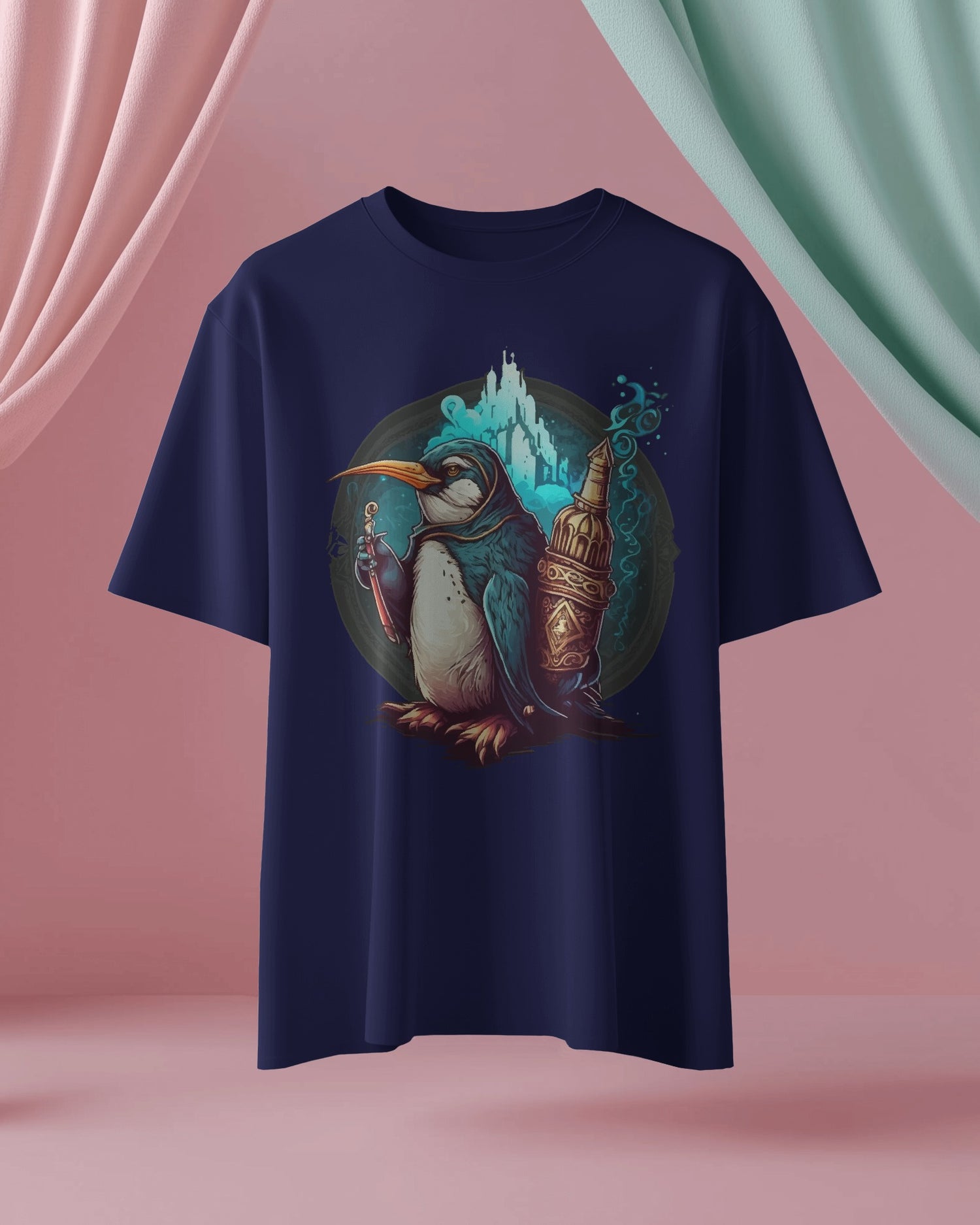 Enchanting Penguin Tee: Intricately Illustrated with a Touch of Magic