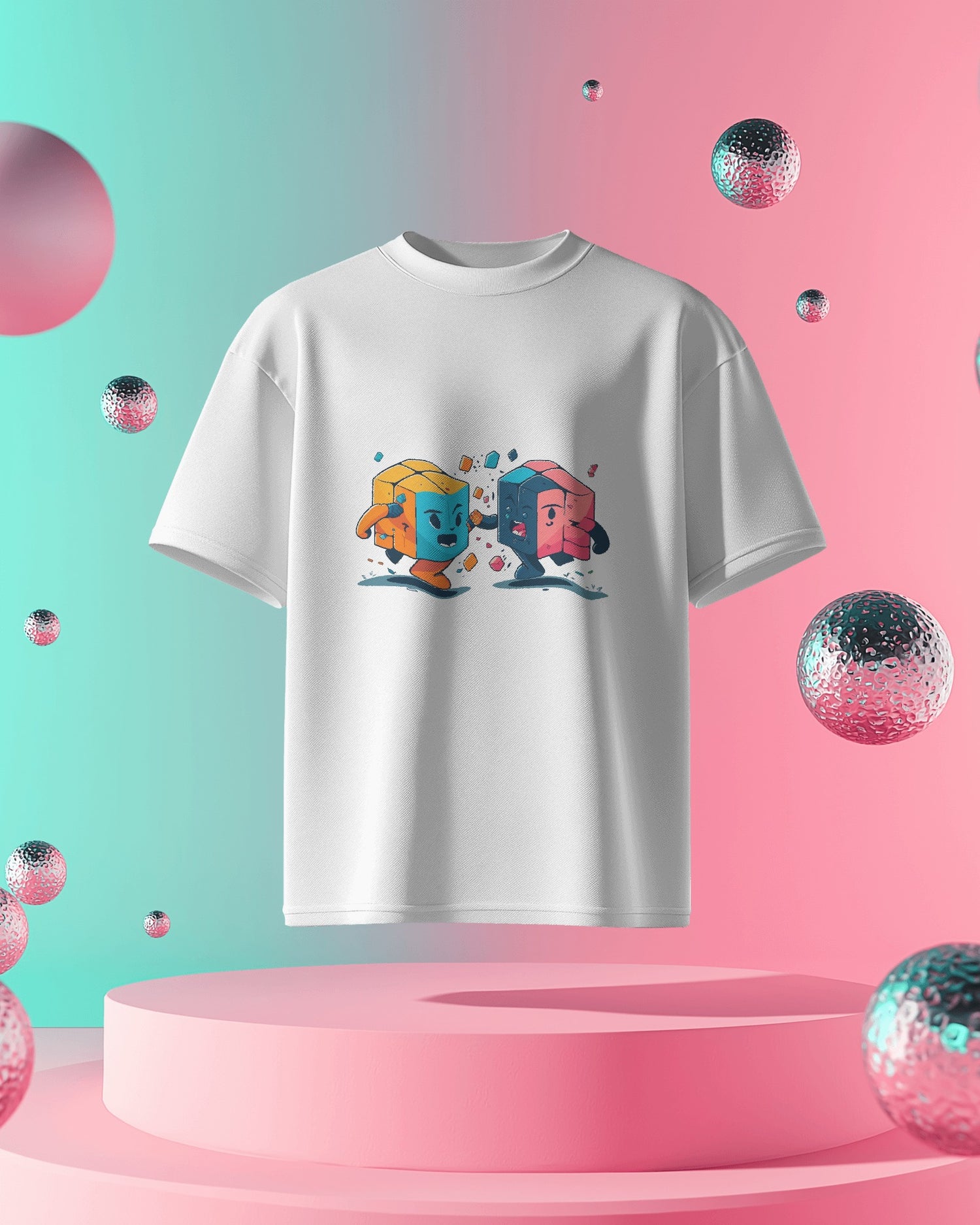 This playful design features two adorable Rubik's cubes in a spirited duel, each flaunting their own colorful charm. Perfect for puzzle lovers and those who enjoy a touch of humor in their wardrobe, this T-shirt combines cuteness with creativity for a look that’s as fun as it is unique.
